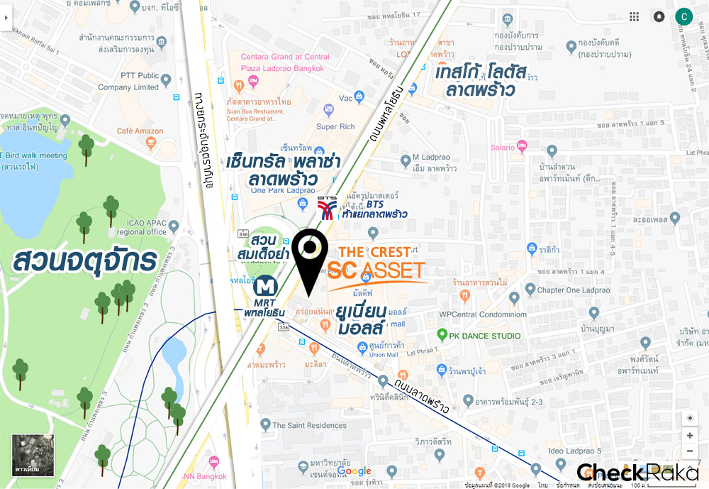 The CREST จาก SC ASSET โครงการนี้ เกิดขึ้นหลังจากการร่วมทุนกับ 'Nishitetsu' บริษัทอสังหาฯ จากญี่ปุ่น โดยร่วมกันตั้งบริษัทในนาม เอสซี เอ็นเอ็นอาร์ วัน (SC NNR1 Co.,Ltd.) สำหรับตัวโครงการตั้งอยู่ติดกับถนนพหลโยธิน ตรงข้ามเซ็นทรัล พลาซ่า ลาดพร้าว และอยู่ห่างจากรถไฟฟ้าใต้ดิน MRT สถานีพหลโยธินประมาณ 90 เมตร และห่างจากรถไฟฟ้า BTS สถานีห้าแยกลาดพร้าวประมาณ 290 เมตร