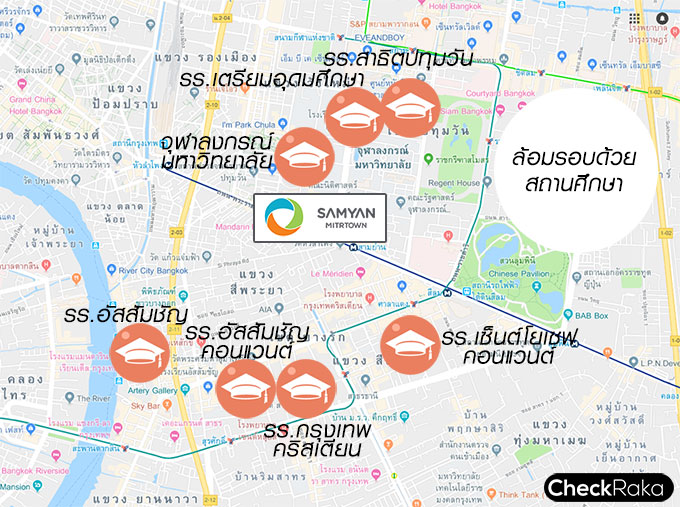 การเดินทางเข้าจุฬาฯ สำหรับน้องๆ ที่เรียนอยู่จุฬา หรือเตรียมอุมศึกษา รวมถึงสาธิตปทุมวัน ก็อยู่หลังโครงการเลยล่ะค่ะ ส่วนน้องๆ ที่เรียนฝั่งสีลม ไม่ว่าจะเป็น กรุงเทพคริสเตียน อัสสัมชัญคอนแวนต์ ก็นั่ง MRT สะดวกมาเชื่อม BTS ไปโรงเรียนแบบไม่ต้องกลัวรถติด