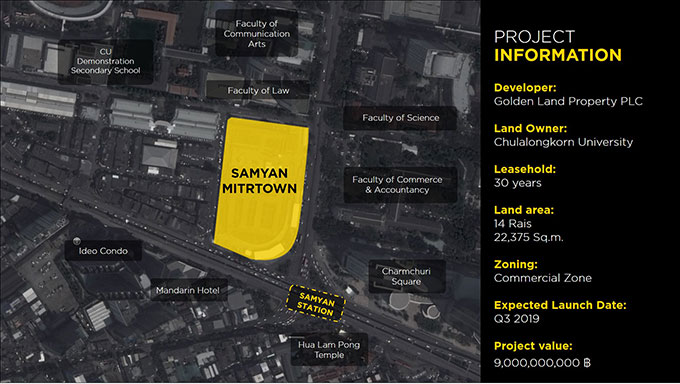 สามย่านมิตรทาวน์ คือ Mixed Use โครงการล่าสุดของ GOLDENLAND ตั้งอยู่บนถนนพระราม 4 หัวมุมถนนพญาไท ตัดพระราม 4 ขนาดที่ดินประมาณ 13-3-93.4 ไร่ โดยมีพื้นที่ใช้สอยทั้งหมด 222,000 ตารางเมตร ถ้ามองจาก Location ของโครงการต้องบอกว่าคือ "จุดแข็ง" จริงๆ ค่ะ เพราะอยู่กึ่งกลางระหว่างชุมชนเก่าอย่างเยาวราช และย่านธุรกิจอย่างสาทร-สีลม โดยมี MRT เป็นตัวเชื่อมเรื่องการเดินทาง และในอนาคตเมื่อรถไฟฟ้าใต้ดินสายสีน้ำเงินช่วงหัวลำโพง-บางแค (คาดว่าเปิดใช้ ส.ค. 2562...ปีนี้!) เปิดใช้ การเดินไปทางไปเยาวราช และพื้นที่เกาะรัตนโกสินทร์ก็จะง่ายและสะดวกมากขึ้นแน่นอน