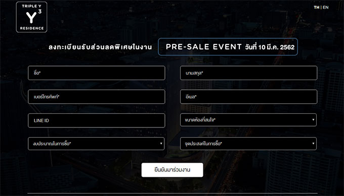 ทริปเปิ้ล วาย เรสซิเด้นซ์ (Triple Y Residence) ราคาเริ่มต้น 4.49 ล้านบาทสำหรับห้อง 34 ตร.ม. สิทธิพิเศษ สำหรับผู้ลงทะเบียนเข้าร่วมงาน "Pre-sale Event" รับส่วนลด 100,000 บาท ทันที เพียงลงทะเบียนตามลิงก์ด้านล่างสอบถามรายละเอียดเพิ่มเติม โทร. 065-275-7472 หรือ www.tripleyresidence.com