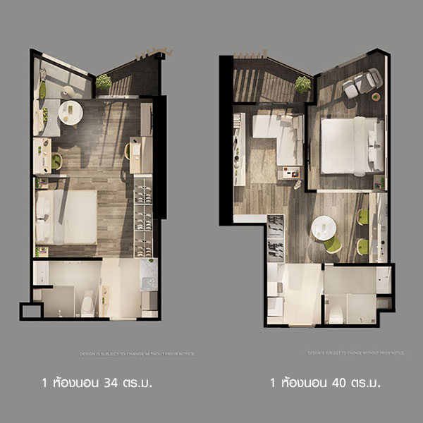 - 1 ห้องนอน ประมาณ 40 ตร.ม. 19 ยูนิต