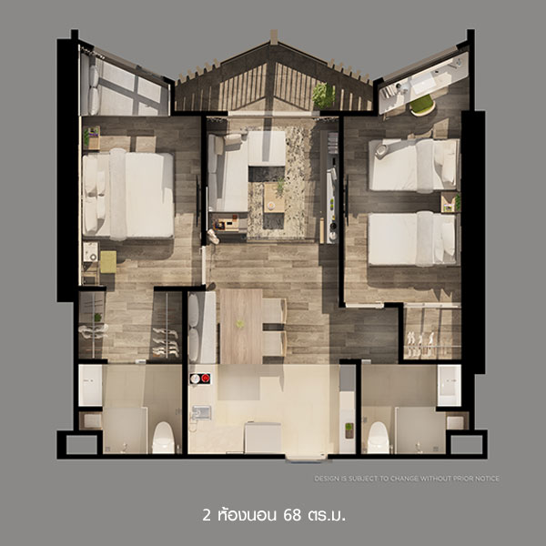 - 2 ห้องนอน ประมาณ 68 ตร.ม. 38 ยูนิต