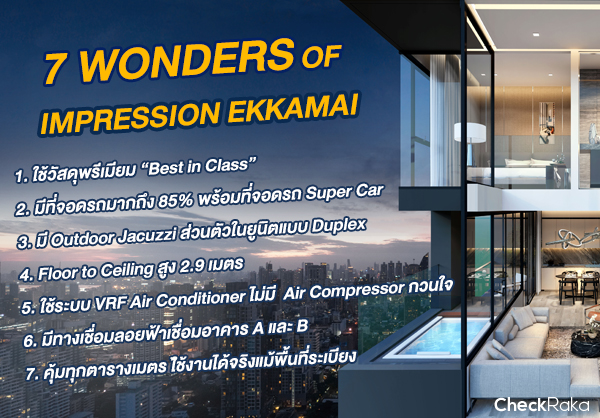 อิมเพรสชั่น เอกมัย (Impression Ekkamai) เป็นโครงการที่นำเอาผู้เชี่ยวชาญจากทั้งประเทศไทยและญี่ปุ่นมาพัฒนาโครงการหรู เพื่อยกระดับคอนโดมิเนียมให้ดียิ่งๆ ขึ้นไป ไม่ว่าจะเป็นการออกแบบที่โดดเด่น ตัวอาคารได้ใส่ใจปรับแก้แบบหลายครั้งจนได้แบบที่ดีที่สุด รวมถึงการเลือกใช้วัสดุและระบบเทคโนโลยีต่างๆ ที่ทันสมัย ไม่ว่าจะเป็น VRF Aircondition และ EV Charger รองรับรถยนต์ไฟฟ้า โดยราคาแบบ 2 ห้องนอน 2 ห้องน้ำ เริ่มต้น 7.9 ล้านบาท ท่านที่สนใจสามารถลงทะเบียนเพื่อรับข้อมูลและสิทธิพิเศษได้ที่ด้านล่างนี้ค่ะ