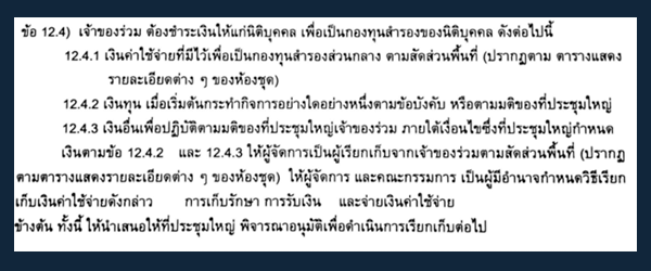ตัวอย่างเรื่องการใช้ "เงินกองทุน" ในข้อบังคับของคอนโดแห่งหนึ่งแถวราชเทวี