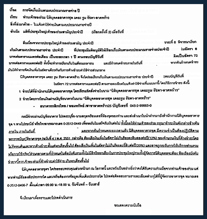หรือการเรียกเก็บ "เงินตามงบประมาณรายจ่าย" ของโครงการ เดอะรูม รัชดา-ลาดพร้าว