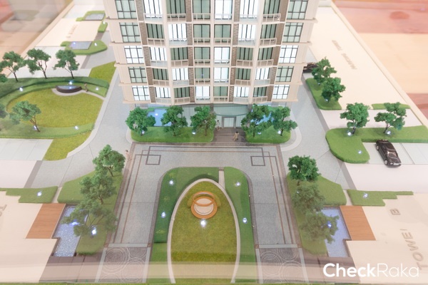มุมมองโมเดลจำลอง Tower B ฝั่งด้านหน้าโครงการที่ติดกับถนนสุขุมวิท 39