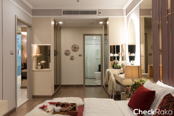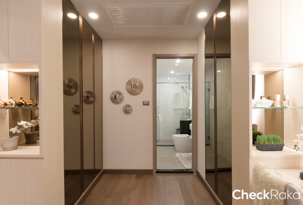 Built-in เป็นตู้เสื้อผ้าสูงจรดฝ้ามาให้ดูเป็นไอเดียทั้ง 2 ฝั่ง ทำให้เก็บเสื้อผ้าและเก็บของได้อย่างเต็มที่