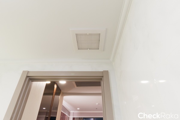 ห้องน้ำที่ไม่ติดกับห้องหัวมุมจะได้พัดลมดูดอากาศ ส่วนห้องน้ำห้องไหนที่ติดกับหัวมุมก็จะไม่มีเครื่องดูดอากาศ