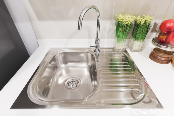ระยะทำครัวจากเคาน์เตอร์ครัวถึงผนังอีกฝั่งห่างกันประมาณ 110 ซม. หมุนซ้ายขวาขยับตัวทำครัวได้สบายๆ