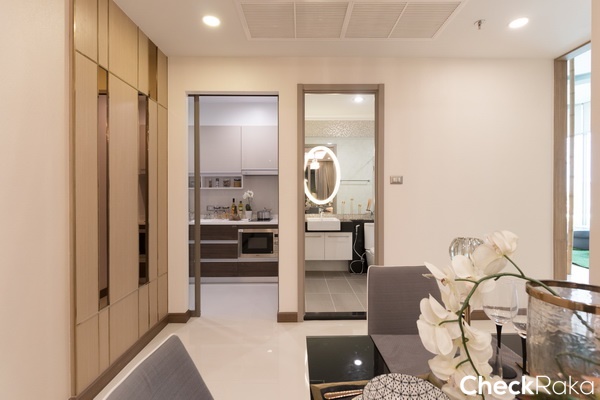 เดินเข้ามาทางขวามือจะเป็นห้องน้ำ และถัดมาเป็นห้องครัว