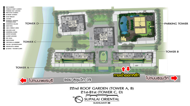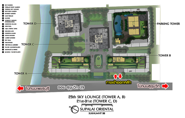 แผนผังตำแหน่งที่ตั้งสิ่งอำนวยความสะดวกภายในโครงการ ศุภาลัย โอเรียนทัล สุขุมวิท 39