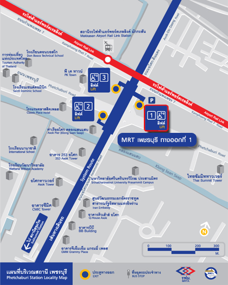 หรือหากเดินทางด้วยรถไฟฟ้า MRT สถานีที่ใกล้ที่สุดคือ สถานีมักกะสัน ทางออกที่ 1 นอกจากนี้ยังอยู่ใกล้กับรถไฟฟ้าสายสีแดงอ่อน เชื่อมต่อ Airport Rail Link และท่าเรือด่วนอิตัลไทยได้อีกด้วย