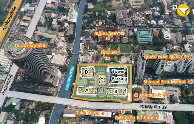ตัวโครงการตั้งอยู่ภายในซอยสุขุมวิท 39 แขวงคลองตันเหนือ เขตวัฒนา กทม. ถือเป็นอีกหนึ่งทำเลศักยภาพในย่านธุรกิจสำคัญๆ อย่างสุขุมวิท เนื่องจากทำเลนี้มีชาวต่างชาติ โดยเฉพาะชาวญี่ปุ่นทำงานในไทยอยู่เป็นจำนวนมาก จึงเป็นโอกาสที่จะได้ผลตอบแทนค่อนข้างสูงสำหรับการซื้อไว้ลงทุนปล่อยเช่า หรือหากจะซื้อไว้อยู่เองก็ดี เพราะแวดล้อมด้วยสิ่งอำนวยความสะดวกที่ครบครัน ตอบโจทย์ Lifestyle สำหรับการอยู่อาศัยได้เป็นอย่างดี