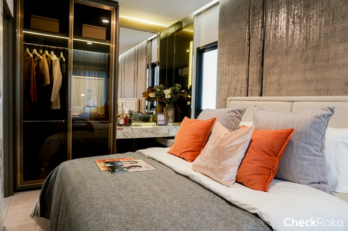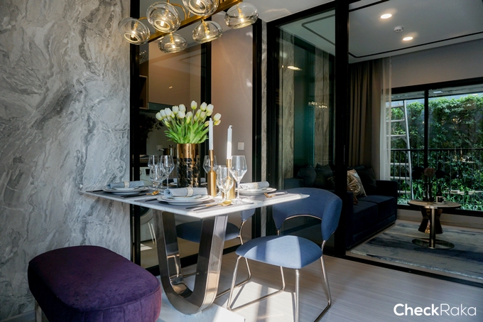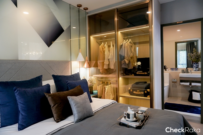 อาทิตย์ก่อนทีมงาน Checkraka มีโอกาสเข้าชมสำนักงานขาย Aspire สุขุมวิท-อ่อนนุช ความรู้สึกแรกพบคือ ถนนสุขุมวิท 77 โล่งกว้าง (เดินดูช่วงบ่ายๆ) แต่พอเดินเข้าไปในสำนักงานขาย ระยะถอยร่นจากถนนใหญ่ที่มีเสียงรถวิ่งแทบจะตลอดเวลา ทำให้เสียงค่อยๆ เงียบลง สงบมากขึ้น และพอเดินเข้าไปข้างในสีสันต่างๆ เริ่มทำให้เรารู้สึกสนุกขึ้น โดยเฉพาะตอนที่อยู่ในห้องตัวอย่าง ห้องแรกคือ ห้องแบบ 1 Bedroom 36 ตร.ม. ที่ใช้โทนเข้มอย่างสีกรม ม่วง เทา สลับกันอ่อนเข้ม ฟังก์ชันของห้องให้ความสำคัญกับทุกๆ ส่วนเท่าๆ กัน ได้ครัวปิดกั้นห้องนอน และ Living room เป็นสัดส่วน รวมถึงได้ห้องน้ำสำเร็จรูป พร้อมสุขภัณฑ์คุณภาพดี