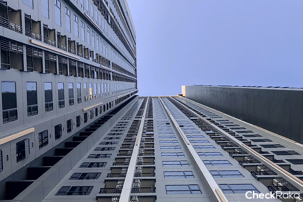 มองตัวอาคารจากด้านล่าง