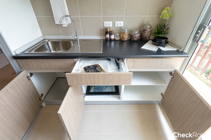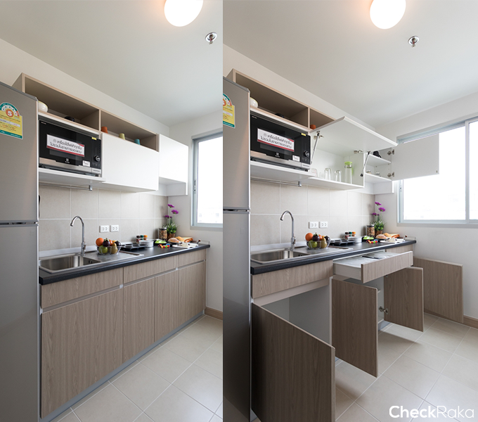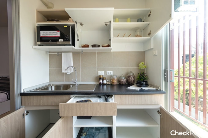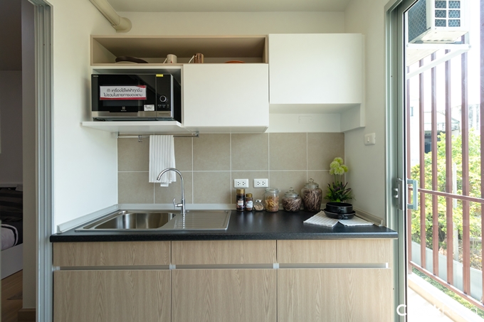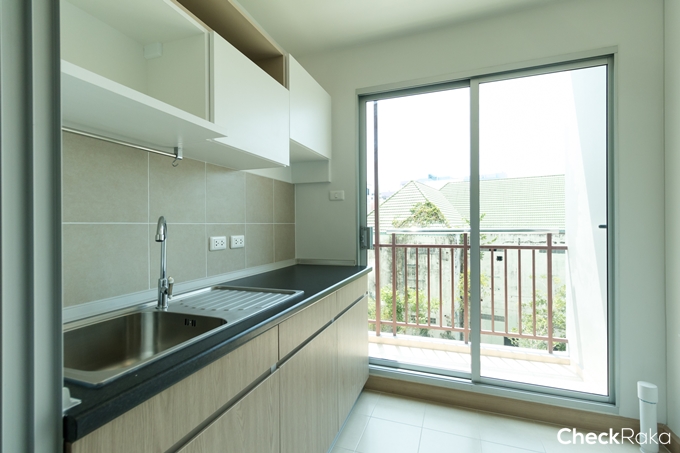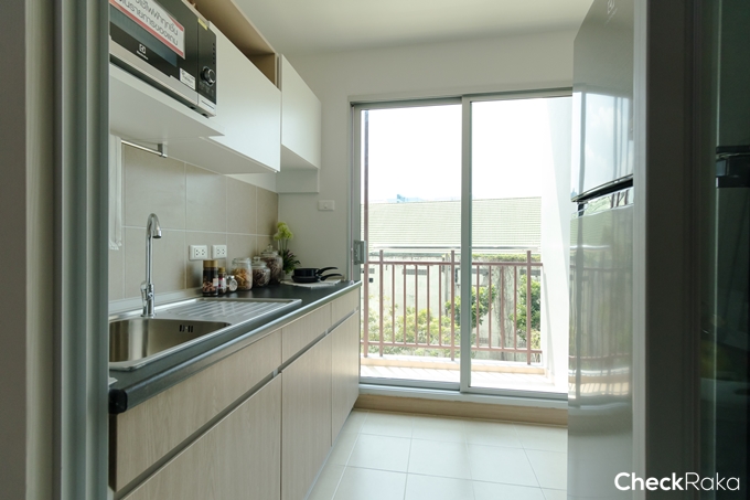 ห้องครัวก็กว้างเช่นกัน และยังมีหน้าต่างบานเลื่อนรับแสงและระบายอากาศให้ด้วย