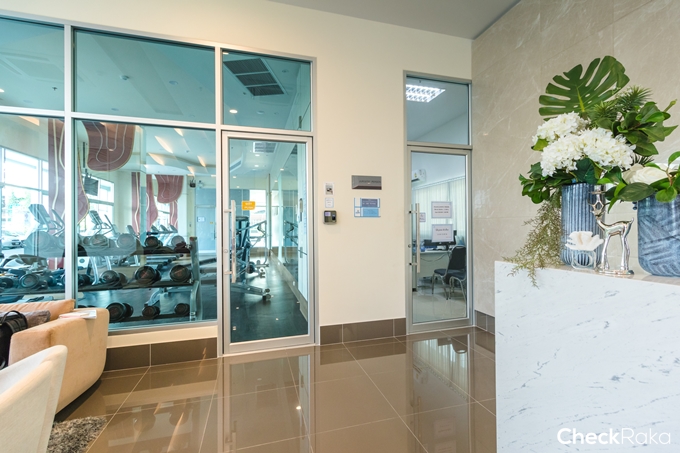 ประตูซ้ายมือจะเป็นฟิตเนส ส่วนทางด้านขวาจะเป็นสำนักงานนิติบุคคล
