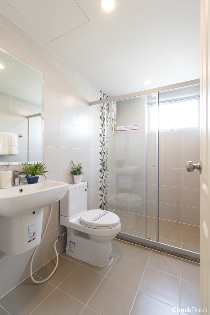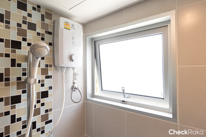 ภายในห้องน้ำได้ครบแบบนี้เลยค่ะ มีเครื่องทำน้ำอุ่นให้ด้วย