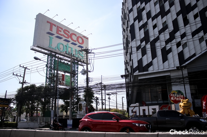 ขับรถต่อมาเรื่อยๆ ก็มีร้านวัสดุก่อสร้าง ห้างบิ๊กซี และอาคารพาณิชย์สลับกันไป