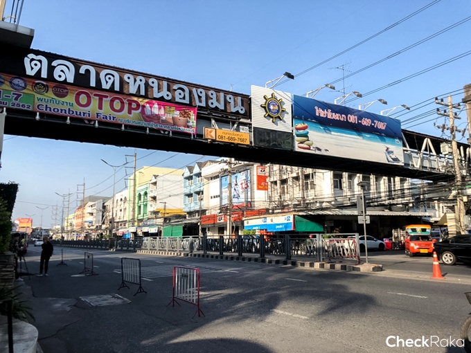 หรือถ้าใครอยากซื้อของฝาก อยากกินข้าวหลามอร่อยขึ้นชื่อ ก็มาตลาดหนองมนได้ง่ายๆ ขับรถมาไม่เกิน 10 กิโลเมตร