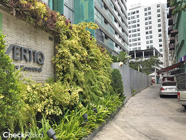ทางลัดจะเป็นซอยเล็กๆ ติดกับคอนโด Vertiq ด้านตรงข้าม