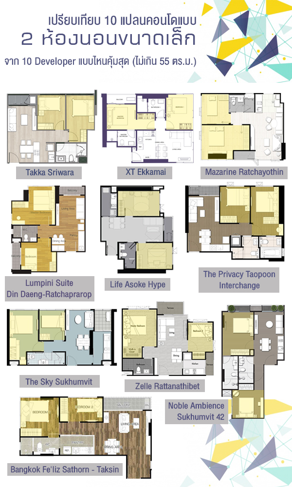 เทียบแปลนกันชัดๆ 2 ห้องนอนขนาดเล็ก (ไม่เกิน 55 ตร.ม.) จาก 10 Developer แบบไหนอยู่สบายและคุ้มสุด