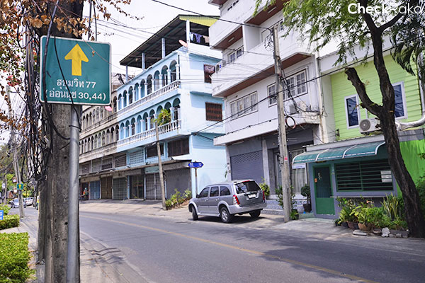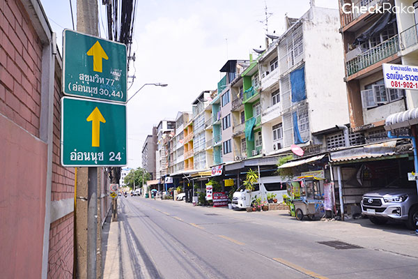เดินกันต่อค่ะ บรรยากาศรอบๆ ส่วนใหญ่เป็นอาคารพาณิชย์ 2-3 ชั้น มีป้ายบอกทางลัดไปอ่อนนุช 24 ด้วย