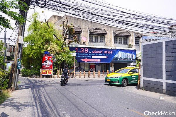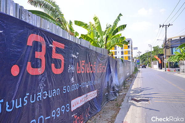 เดินมาอีกนิด แอบเห็นป้ายโฆษณาโครงการของเราแล้ว เลี้ยวซ้ายเข้าไปเลย