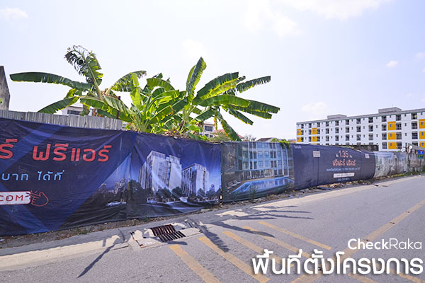ซ้ายมือคือที่ตั้งโครงการค่ะ ตอนนี้ล้อมรั้วติดป้ายชัดเจน ส่วนขวามือคือ Sales Gallery ของโครงการนั่นเอง