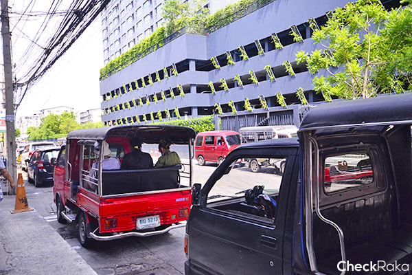แอบมองเข้าไปในซอย ปากซอยมีรถสาธารณะให้เลือกใช้บริการหลากหลายเลยค่ะ