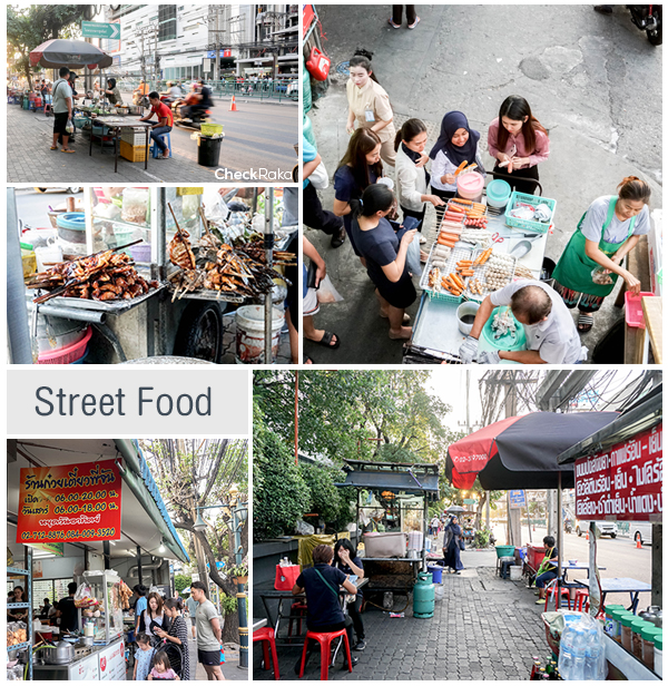 นอกจากร้านอาหารญี่ปุ่น อาหารนานาชาติแบบหรูๆ แล้ว ย่านทองหล่อก็มี Street Food น่าทานเยอะมากค่ะ ส่วนใหญ่ก็จะเปิดช่วงกลางๆ ซอยไปจนถึงถนนเพชรบุรีเลย โดยเฉพาะช่วงเย็นๆ ร้านจะเปิดเยอะและคนจะเยอะมากเป็นพิเศษ ถือว่าเป็นย่านที่มีให้เลือกทั้งแบบหรูและแบบธรรมดา