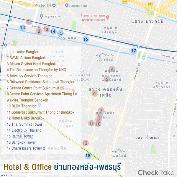 ทองหล่อก็เป็นอีกหนึ่งตัวเลือกอันดับต้นๆ ที่ชาวต่างชาติเลือกมาพัก เพราะอยู่ใจกลางเมือง เดินทางสะดวก และร้านอาหารเยอะ ถือเป็นย่านที่เป็นมิตรกับนักท่องเที่ยวมากๆ โรงแรมก็มีให้เลือกตั้งแต่หลักพันจนไปถึงหลักหมื่นเรียงรายตั้งแต่ต้นซอยไปจนสุดซอยเลยค่ะ