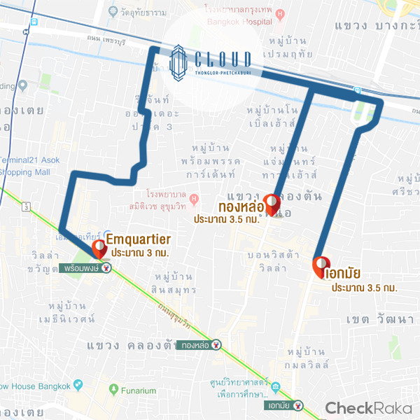 ขยับออกมาอีกนิดจากทองหล่อติดถนนเพชรบุรีก็ยังเป็นทำเลที่สามารถใช้ไลฟ์สไตล์ทองหล่อได้ แถมรถยังไม่ค่อยติดอีกด้วย แน่นอนว่าอีกไม่นานความเจริญต่างๆ ทั้งด้านการคมนาคม (รถไฟฟ้าสายสีเทา) สำนักงาน โรงแรม ร้านค้า Retail ต่างๆ ก็ต้องแผ่ขยายมายังแถบเพชรบุรีอย่างแน่นอน สิ่งเหล่านี้ล้วนเป็นปัจจัยสำคัญในการใช้ชีวิตที่จะทำให้ชีวิตง่ายขึ้น ซึ่งก็ถือเป็นโอกาสดีที่ต้องรีบจับจองอสังหาฯ คอนโดติดถนนเพชรบุรีที่ใกล้ทองหล่อนี้เอาไว้ ก่อนที่ราคาจะพุ่งขึ้นแบบที่ดินในทองหล่อ ที่ปัจจุบันบางแปลงราคาอยู่ที่ประมาณ 2.86 ล้านบาท/ตารางวาแล้ว โดยโครงการที่น่าจับตามองและน่าสนใจในตอนนี้คือ คลาวด์ ทองหล่อ-เพชรบุรี (CLOUD Thonglor-Phetchaburi) จากบริษัท ไรส์แลนด์ (ประเทศไทย) บริษัทพัฒนาอสังหาริมทรัพย์จากประเทศฮ่องกง ซึ่งได้พัฒนาโครงการในประเทศต่างๆ ทั่วโลก อาทิ สหรัฐอเมริกา อินเดีย นิวซีแลนด์ และประเทศไทย โดยโครงการนี้เป็นคอนโดมิเนียมโครงการที่ 2 หลังจาก อาร์ติซาน รัชดา (Artisan Ratchada) ประสบความสำเร็จได้รับผลตอบรับดีเกินคาด