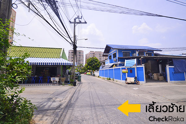 เลี้ยวซ้ายอีกครั้ง จุดสังเกตคือ บ้านสีฟ้า