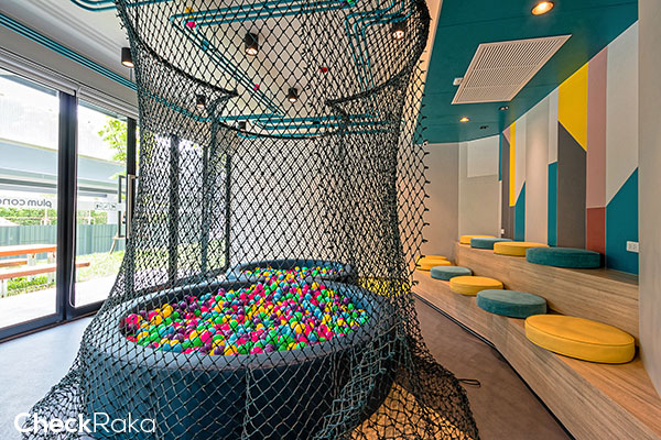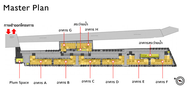 เรามาเริ่มที่ Plum Space กันก่อนค่ะ ซึ่งจะอยู่บริเวณทางเข้าโครงการเลย เป็นอาคาร 4 ชั้น อัดแน่นด้วย Facilities ครบครัน