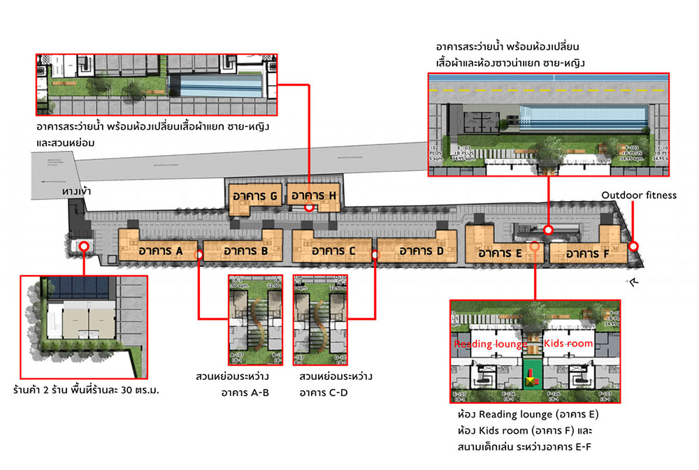 อาคารชุดพักอาศัย: คอนโด Low-Rise สูง 8 ชั้น 8 อาคาร ห้องพักอาศัย 960 ยูนิต และร้านค้า 2 ยูนิต