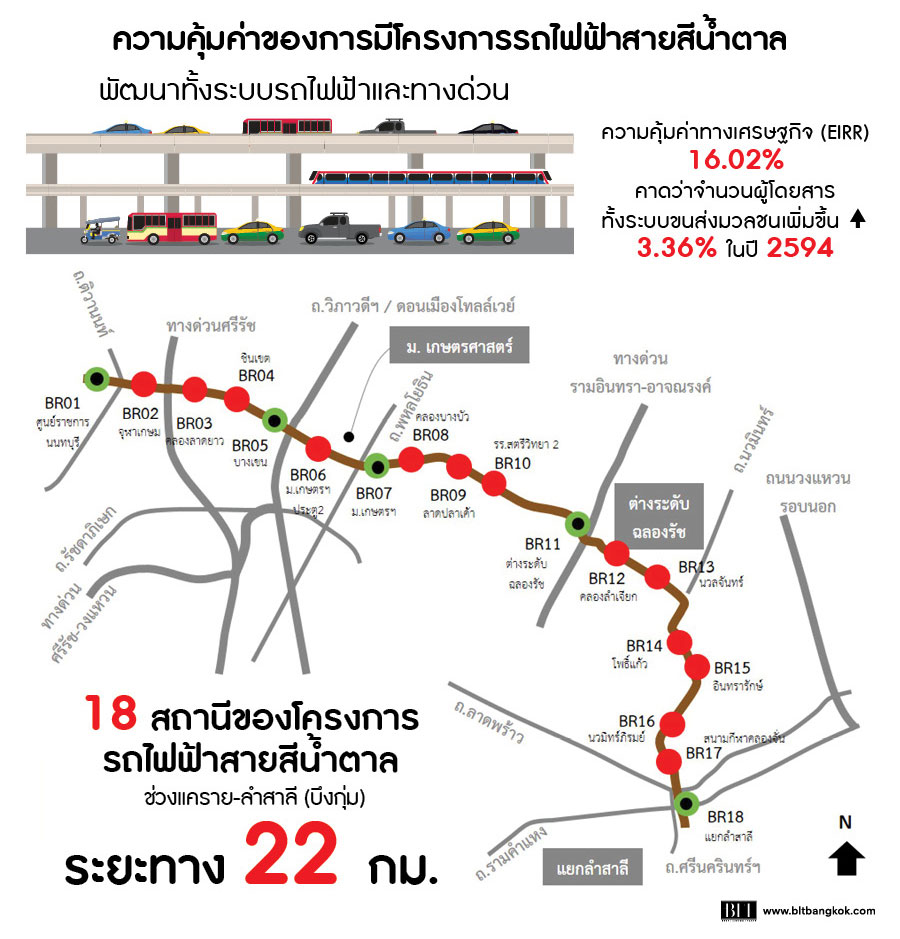 เส้นทางรถไฟฟ้าสายสีน้ำตาล (แคราย-ลำสาลี-บึงกุ่ม) ยังคงอยู่ระหว่างการศึกษาค่ะ