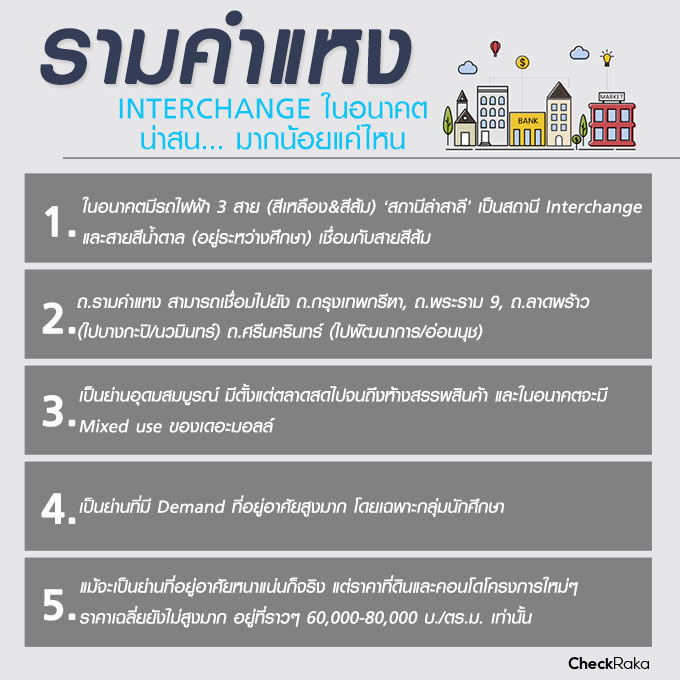 "รามคำแหง" หลายคนคงนึกถึง ม.รามคำแหง เป็นอันดับแรก จริงๆ แล้วรามคำแหงไม่ได้เป็นแค่ย่านมหาวิทยาลัยนะคะ รามคำแหงเจริญมานานแล้ว แต่เป็นการพัฒนาแบบไม่ก้าวกระโดด ในอนาคตรามคำแหงจะเป็น Interchange ของรถไฟฟ้าถึง 3 สายด้วยกัน ช่วงนี้คอนโดหลายโครงการเริ่มลงพื้นที่กันแล้ว อย่างล่าสุด พลัม คอนโด ราม 60 อินเตอร์เชนจ์ (Plum Condo Ram 60 Interchange) ก็เป็นหนึ่งในตัวเลือกคอนโดในรามคำแหงค่ะ ไปรู้จักรามคำแหงแบบคร่าวๆ กันค่ะ พร้อมแวะชม พลัม คอนโด ราม 60 อินเตอร์เชนจ์ (Plum Condo Ram 60 Interchange) ว่าจะน่าซื้อสำหรับคนมองหาคอนโด "แถวๆ รามฯ" หรือเปล่า