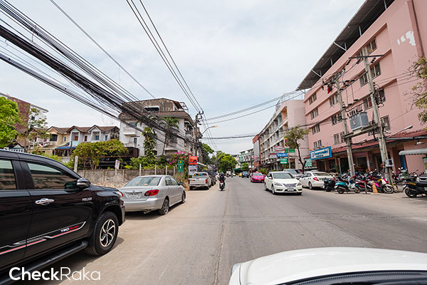 ไปชมทำเลโครงการพร้อมๆ กันดีกว่าค่ะ สำหรับเส้นทางที่สะดวกและรวดเร็วที่สุดก็คือ วิ่งตามถนนรามคำแหง มุ่งหน้าซอยรามคำแหง 60 ค่ะ โดยตลอดเส้นรามคำแหงในตอนนี้จะมีการก่อสร้างรถไฟฟ้าสายสีส้มตลอดเส้นค่ะ