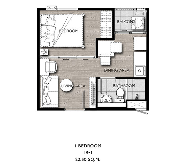 - 1 Bedroom ขนาด 22.5 ตร.ม.