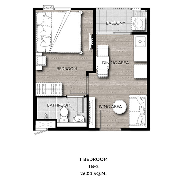 - 1 Bedroom ขนาด 26 ตร.ม.