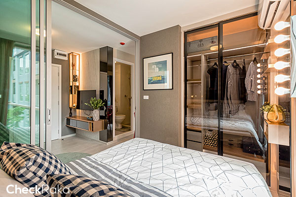 ด้านข้างยังมีพื้นที่เหลือพอสำหรับตู้เสื้อผ้า โต๊ะเครื่องแป้ง หรือโต๊ะทำงาน