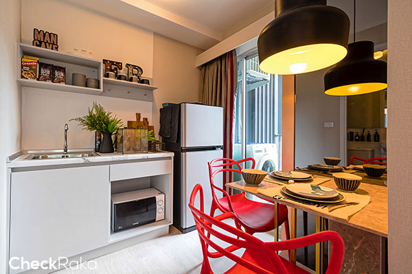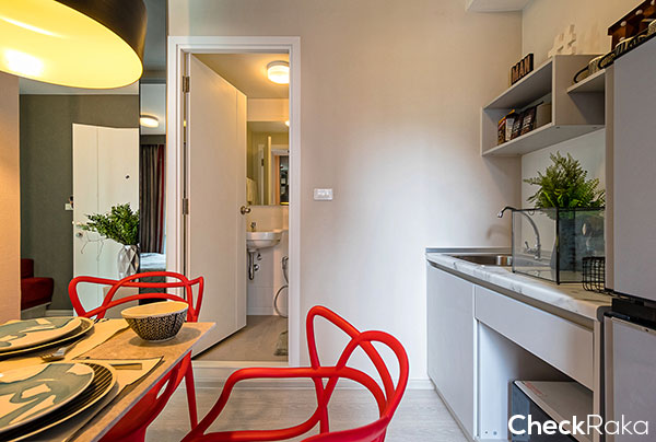 โซนห้องครัว กว้างพอที่จะวางโต๊ะกินข้าวขนาด 2 ที่นั่งได้