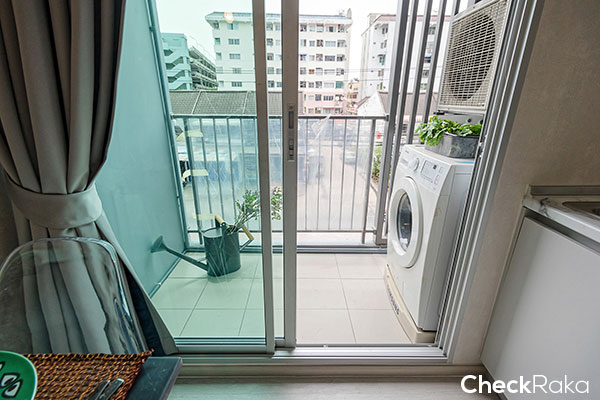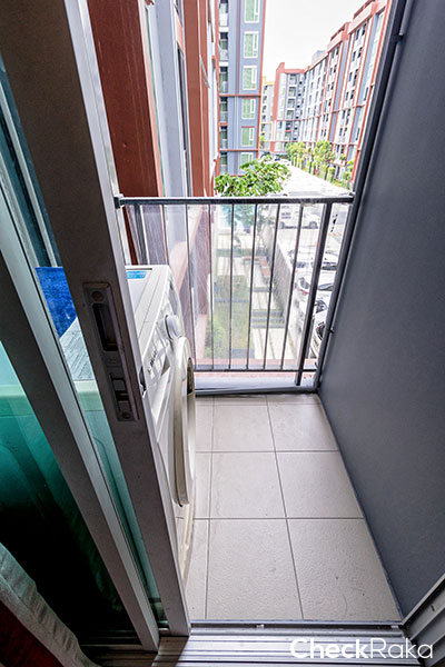 ออกไปดูระเบียงกันบ้าง วางเครื่องซักผ้าแล้วก็ยังสามารถออกไปยืนรับลมได้อยู่
