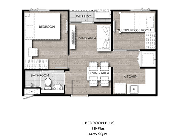1 Bedroom Plus ขนาด 34.95 ตร.ม. - คลิกดูภาพ