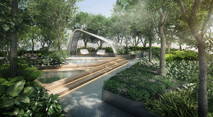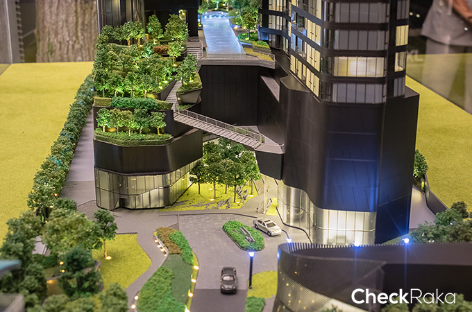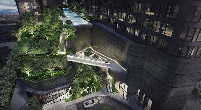 มีการไล่ระดับชั้น ตกแต่งอาคารด้วยต้นไม้และพื้นที่สีเขียว