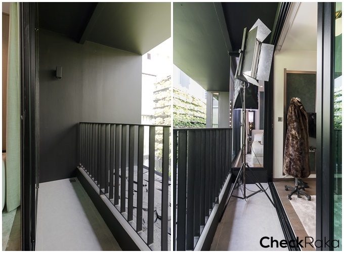 สามารถใช้งานพื้นที่ระเบียงได้อย่างเต็มพื้นที่ เนื่องจากทางโครงการเก็บคอมเพรสเซอร์แอร์ไว้ในพื้นที่ส่วนกลางแล้วนั้นเอง