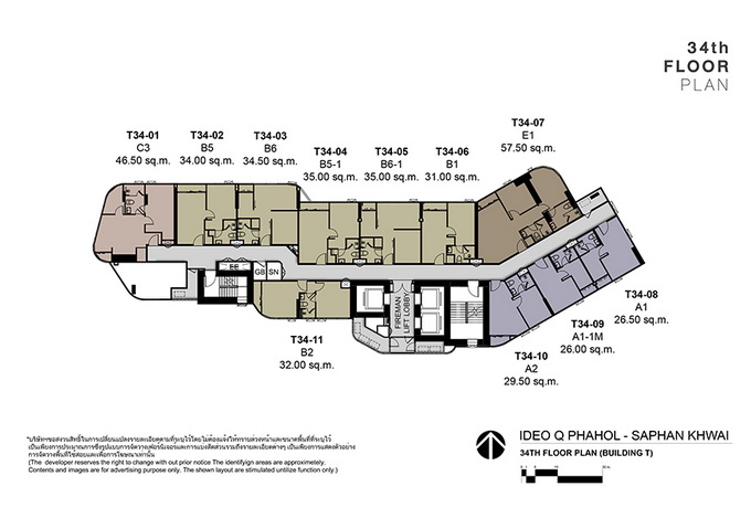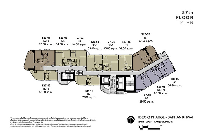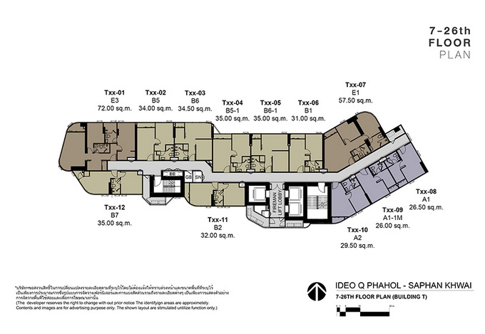 ชั้น 7-26 เป็นห้องพักอาศัย ที่มีตำแหน่งห้องและแบบแปลนเดียวกันหมด