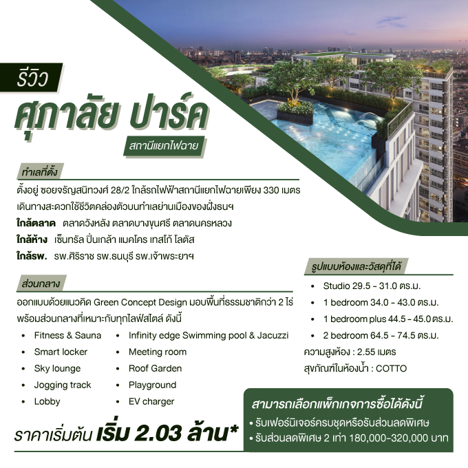 รีวิว ศุภาลัย ปาร์ค สถานีแยกไฟฉาย ใกล้รถไฟฟ้า 330 ม. ใกล้ตลาด แหล่ง Shopping เริ่ม 2.03 ล้าน*