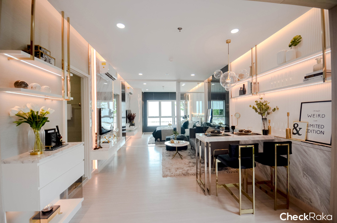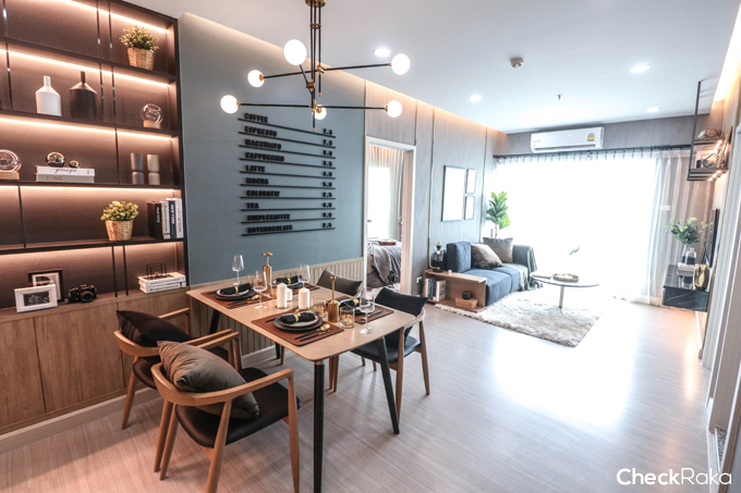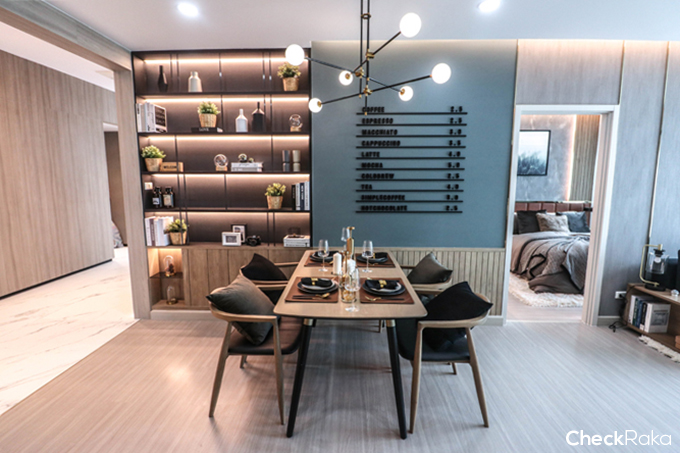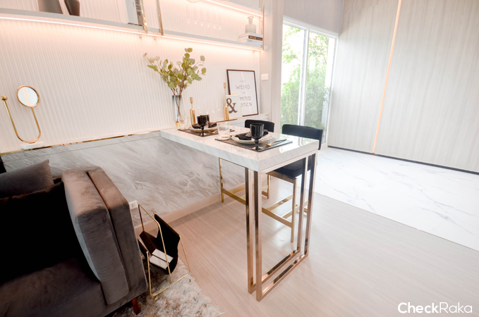 ทางโครงการเลือกโต๊ะรับประทานอาหารแบบบาร์นั่งได้ 2 ท่าน ทำให้ประหยัดเนื้อที่ได้มาก